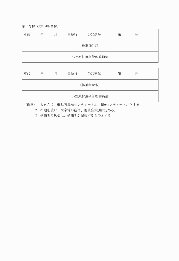 第3条 選挙長及び委員会がする告示は、小笠原村公告式条例(昭和43年小笠原村条例第1号)の例による。