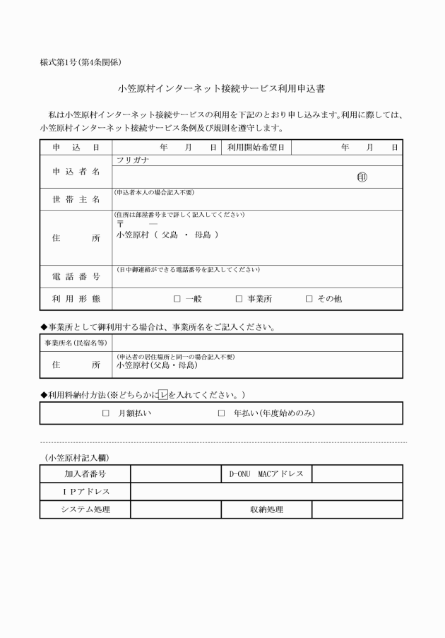○小笠原村インターネット接続サービス事業に関する条例施行規則