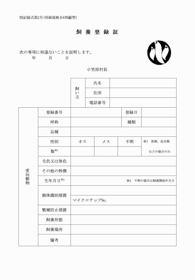 ○小笠原村愛玩動物の適正な飼養及び管理に関する条例施行規則