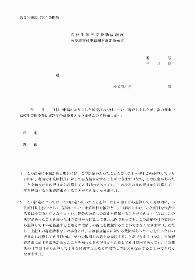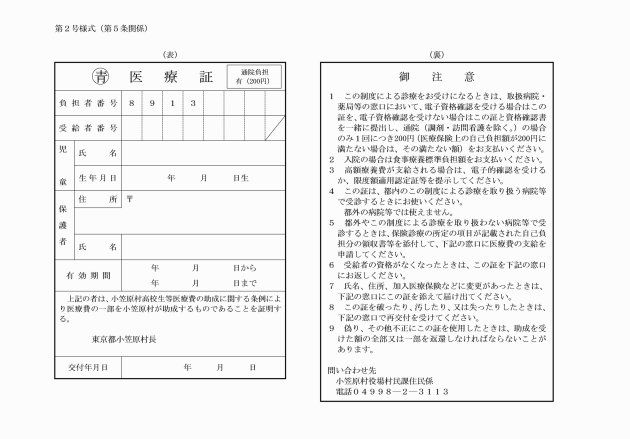 ○小笠原村高校生等の医療費の助成に関する条例施行規則